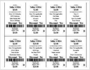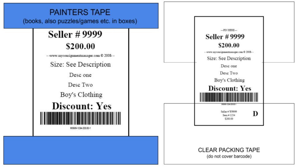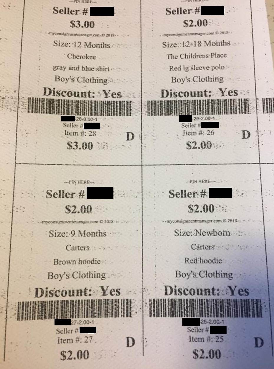 - Consignors must use cardstock, heavy weight paper. Anything 60lbs or above is accepted. NO STICKER TAGS.