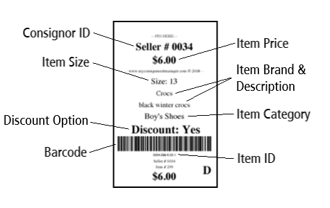 Tagging is the process of entering the items you want to sell into MyCM, printing out the tags, and securing them to your consignment items. It is important that your online inventory is accurate and your printed tags are well secured.