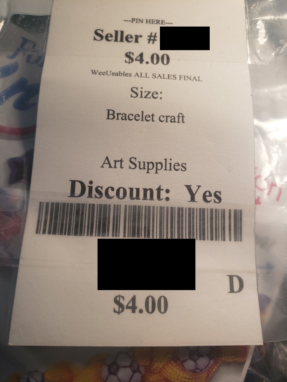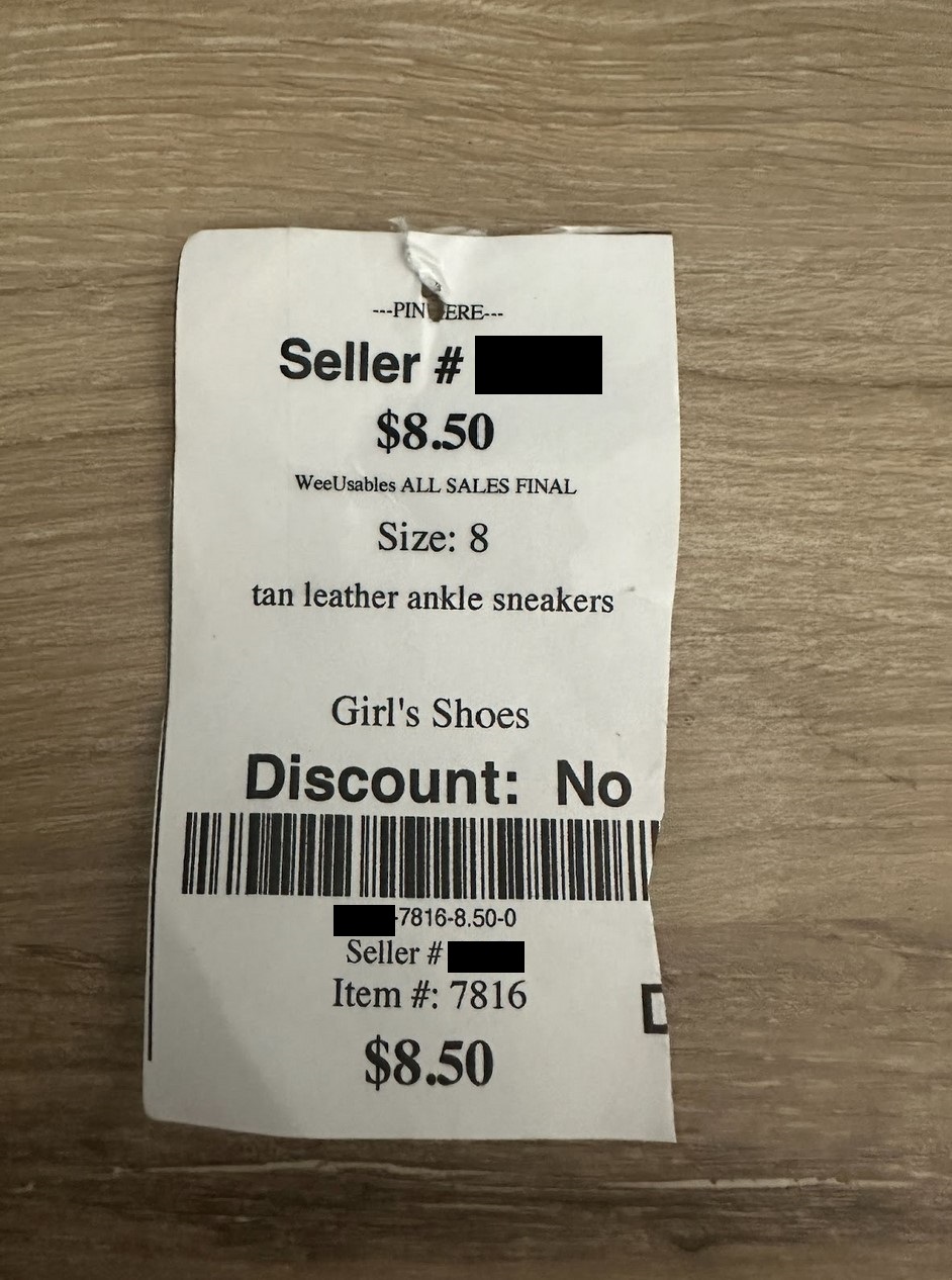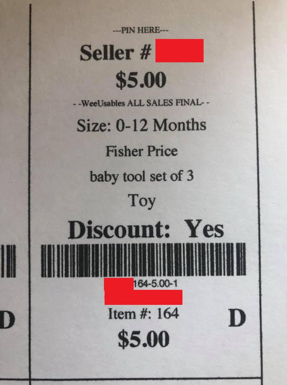 If you need to change a price or discount on an item, DO NOT modify the tag by hand. Instead, you must make the change in your Wee account and reprint the tag. Hand-modified prices or discounted tags will not be accepted at the sale.