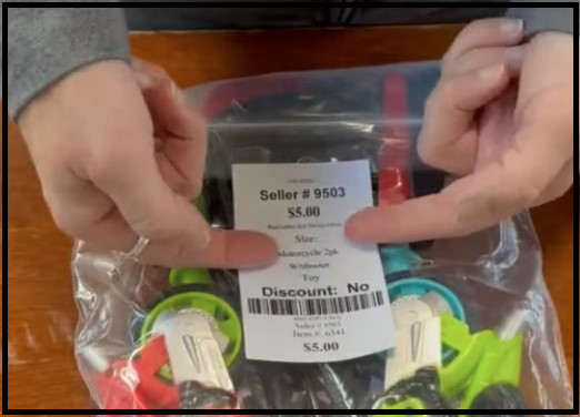 - Toys: Tags may be attached directly to non-delicate surfaces with packaging tape. Small toys may be bagged.